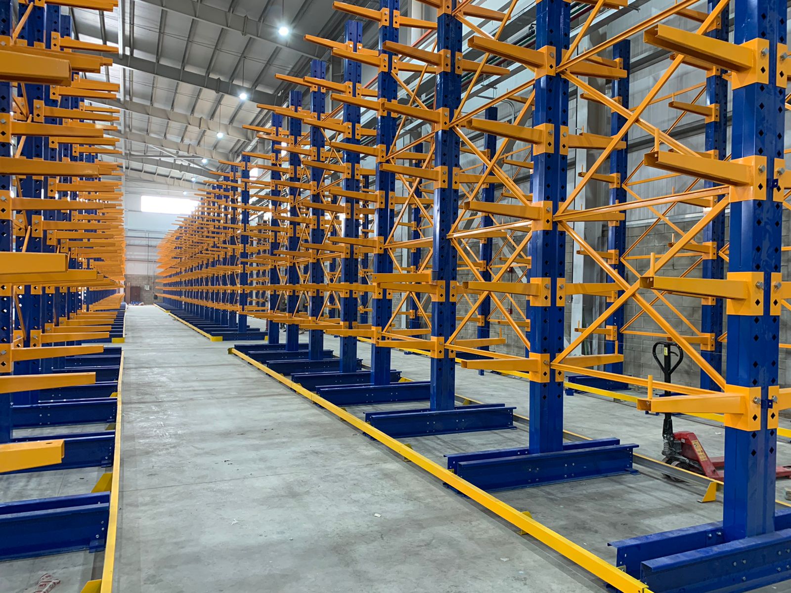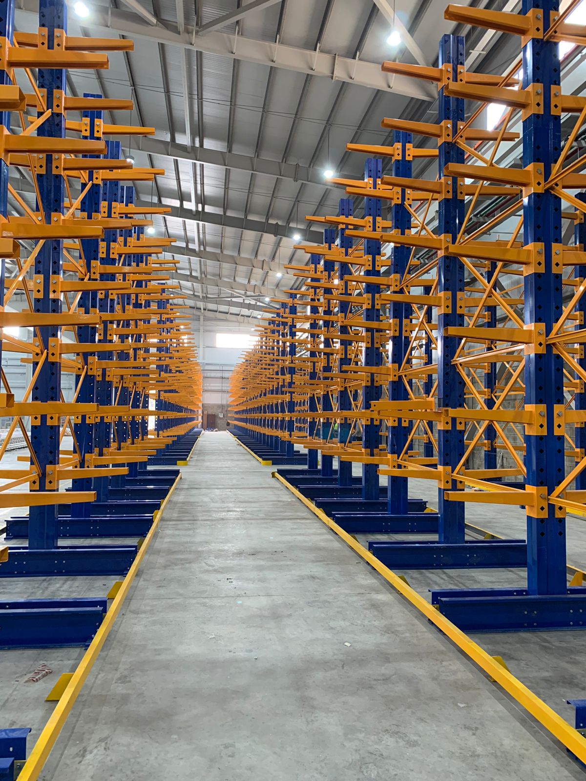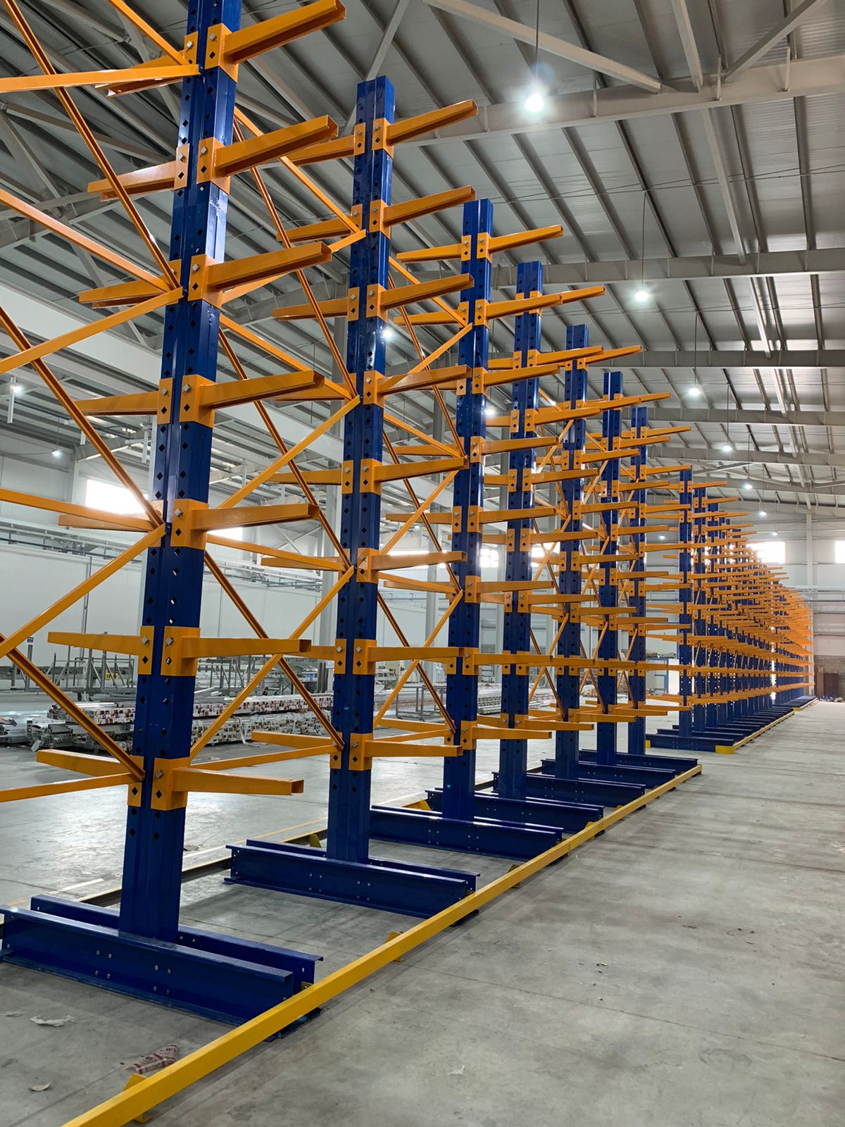 Cantilever racking system is idol for storing long goods or Other bulky items. The list of products that can be stored ranges From plastic tubing, steel pipes, profiles and wooden planks to heavy coils. Cantilever uprights used as single-sided or dual-sided designs and the rows of uprights can be any length required. The cantilever arms can be modified flexibly for stored goods with different heights and loading requirements. Subsequent adjustments and adaptations can be made without tools.