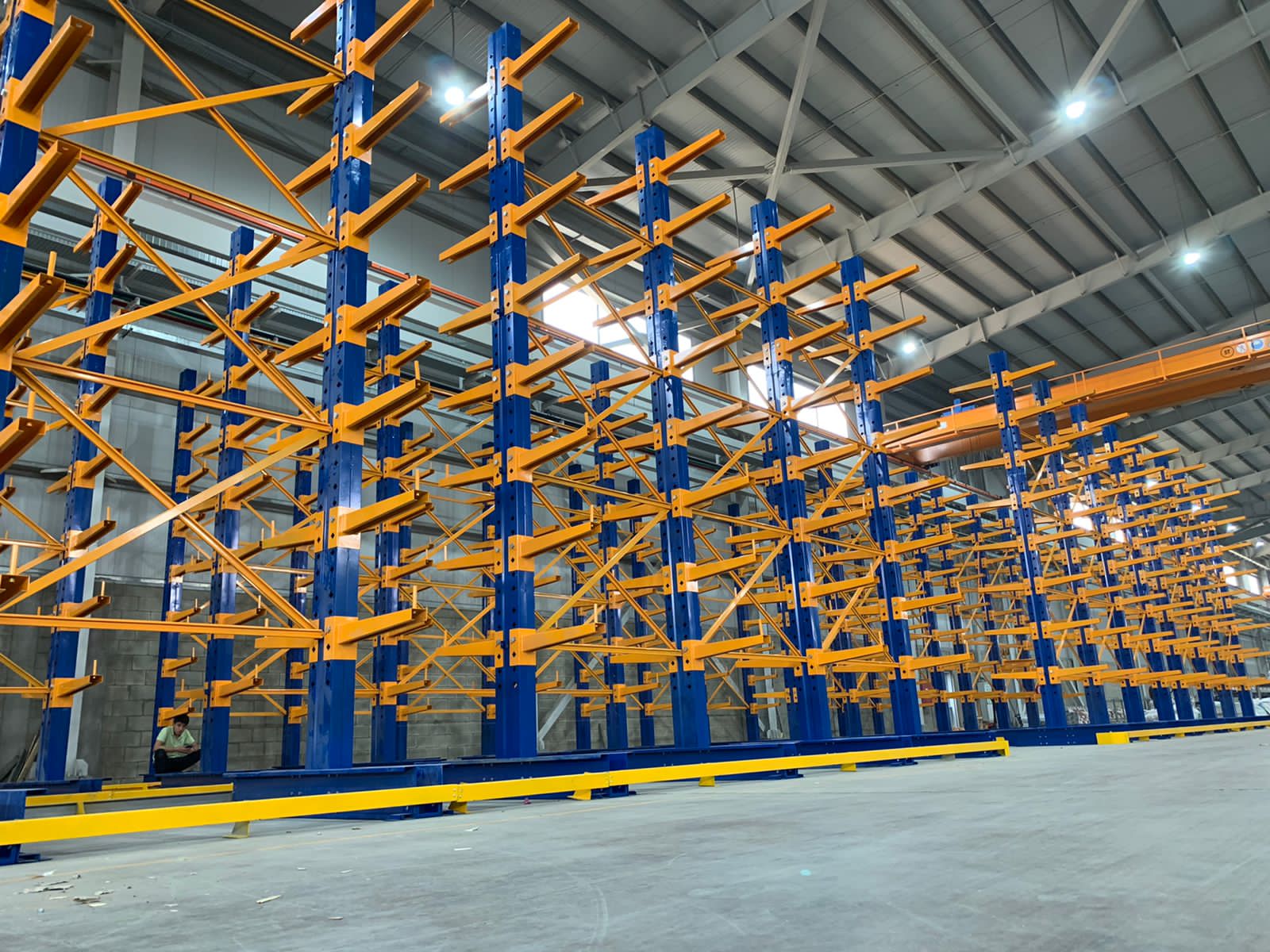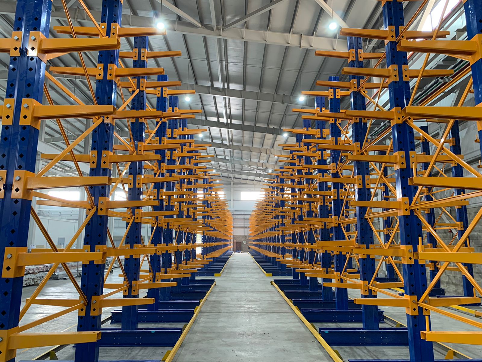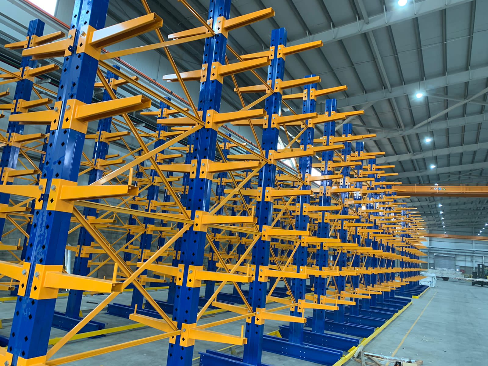 Cantilever racking system is idol for storing long goods or Other bulky items. The list of products that can be stored ranges From plastic tubing, steel pipes, profiles and wooden planks to heavy coils. Cantilever uprights used as single-sided or dual-sided designs and the rows of uprights can be any length required. The cantilever arms can be modified flexibly for stored goods with different heights and loading requirements. Subsequent adjustments and adaptations can be made without tools.
